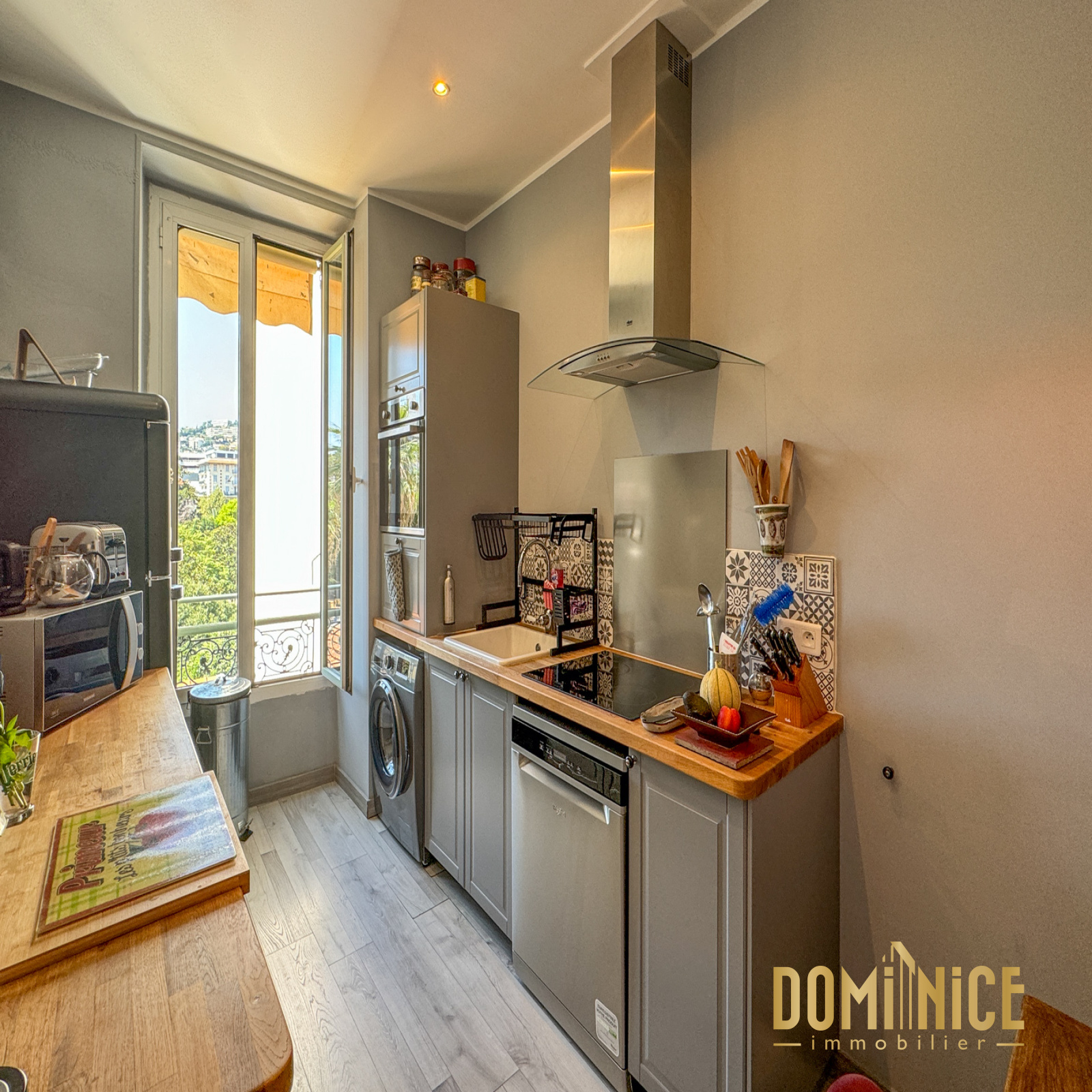 EN EXCLUSIVITE à Nice quartier LIBERATION : Dans immeuble niçois en étage élevé, vaste 3 pièces traversant en parfait état. Il dispose d'un séjour de 26 m2 avec 3 fenêtres offrant un maximum de lumière, 2 grandes chambres de 13 et 15 m2, un grand dressing aménagé de 6 m2, salle de bains, WC séparés. Une chambre et la cuisine sont exposées vers le jardin Thiole et la façade des halles de la Gare du Sud que l'on voit s'éclairer à la nuit tombée. Situé à quelques pas du tramway, du cinéma et des halles de la Gare du Sud. Vous trouverez également à proximité : écoles, restaurants, bureau de Poste, Gare. C'est un bien coup de coeur, rare dans le secteur, à visiter avec Dominique 06 62 50 54 72