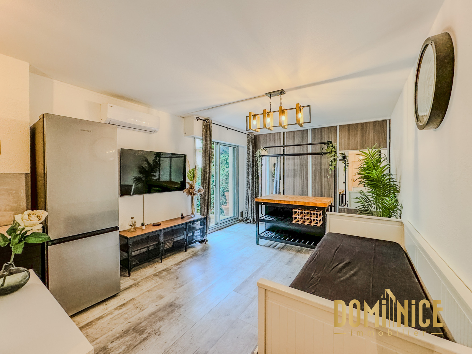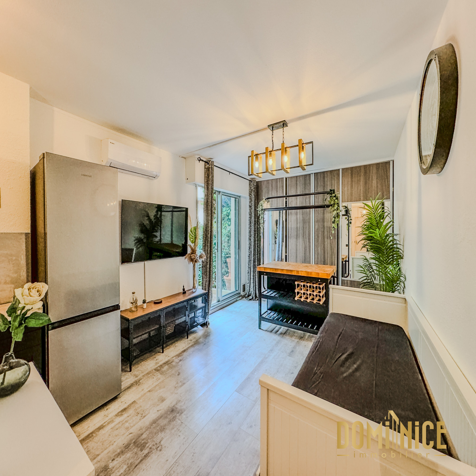 NICE FABRON : En exclusivité, dans une résidence avec piscine, vaste studio de 27 m2 avec terrasse de 15 m2 environ. Il dispose d'une grande pièce de vie avec coin cuisine, rangements, une salle de douches avec WC, et il est vendu avec sa cave. Il est vendu également avec tous ses meubles : machine à laver, rangement dans le couloir, télé grand écran, meuble TV, canapé-lit, ilot central design, grand placard aménagé, cuisine entièrement équipée avec hotte, grand réfrigérateur, four, four micro ondes, table de cuisson... Climatisation réversible, double vitrage.