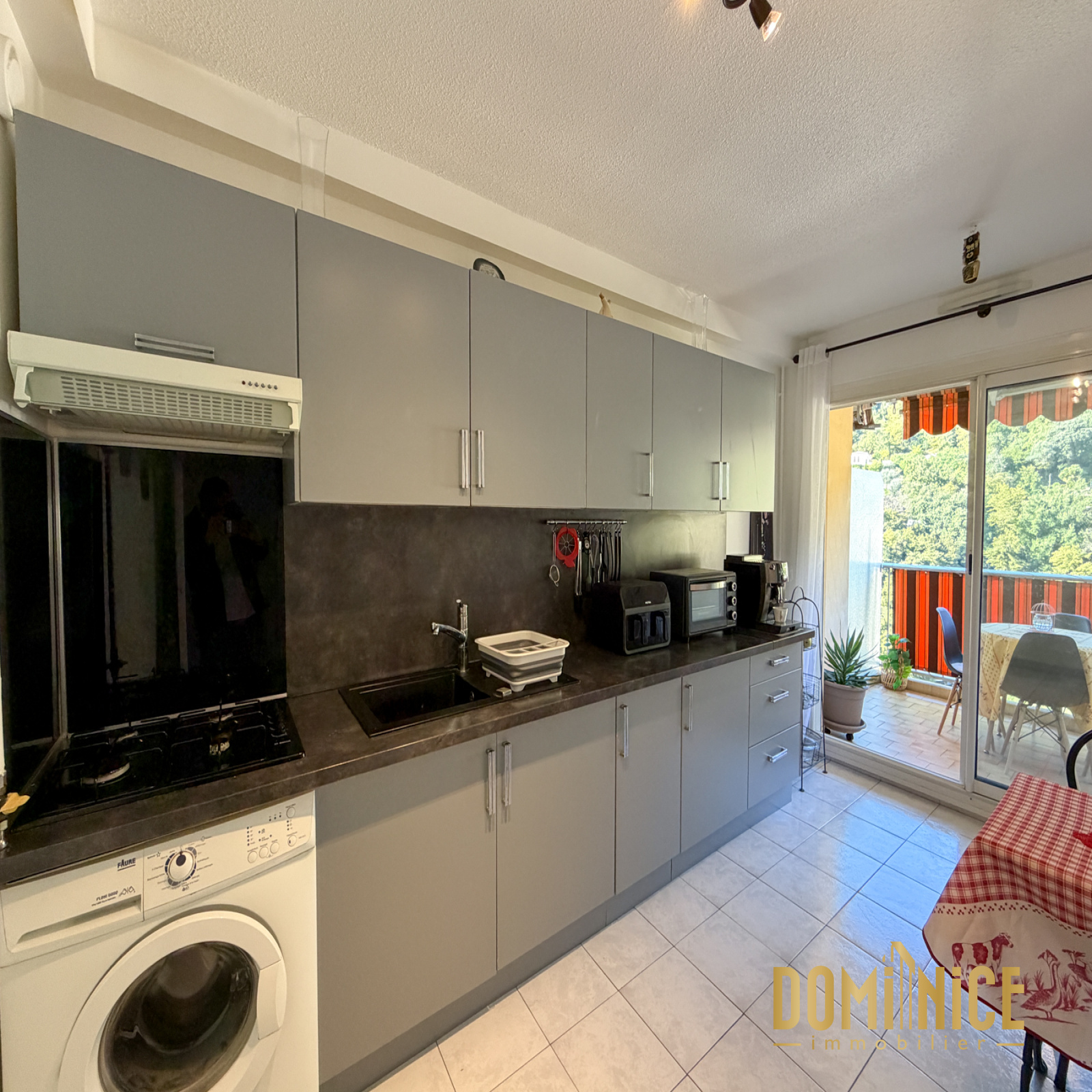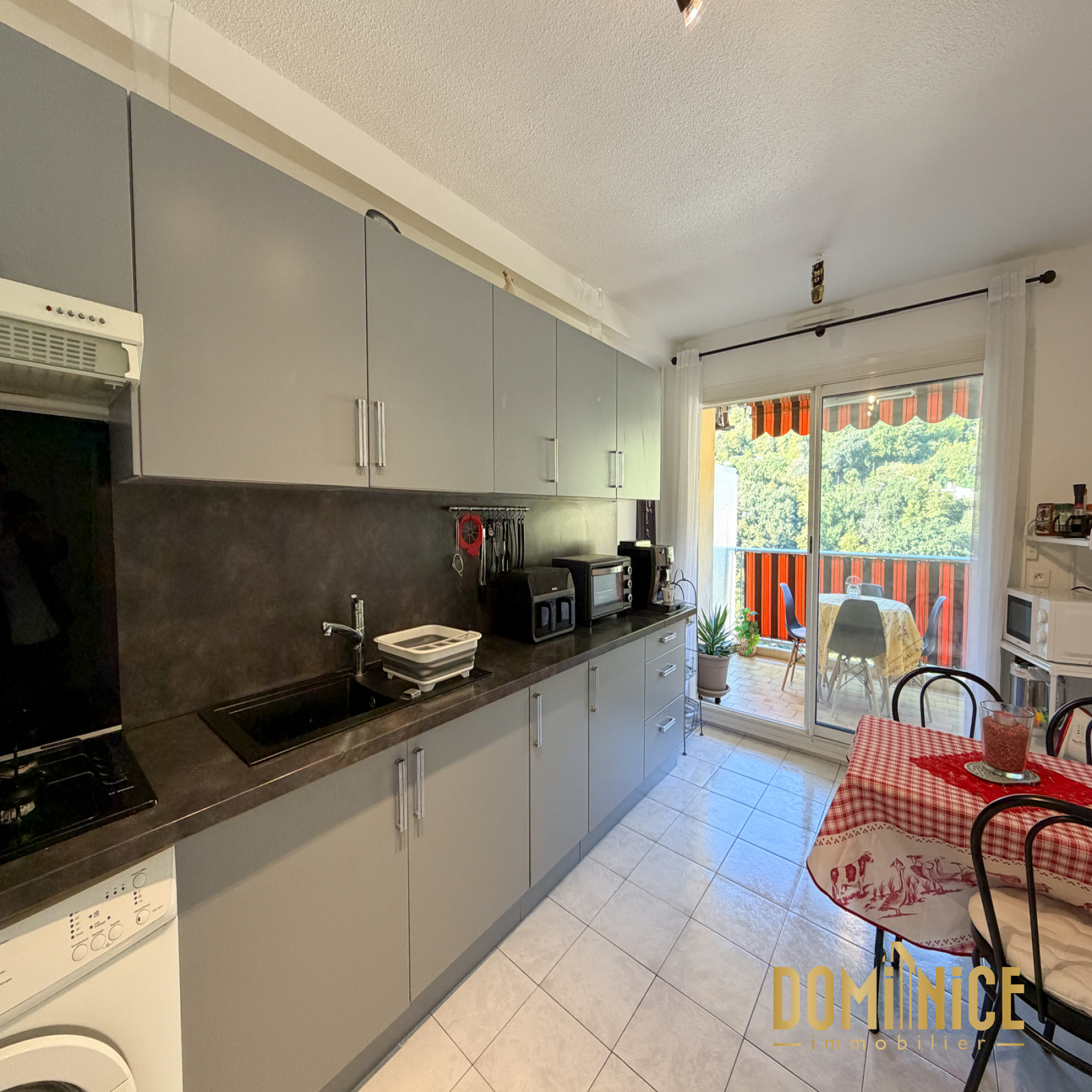EXCLUSIVITÉ : Dans un immeuble au calme, en retrait du Boulevard Jean Behra, appartement 2 pièces de 50 m2 au dernier étage, en parfait état. Traversant Est-Ouest, il dispose d'un grand balcon/terrasse de 9 m2, de double vitrage et de clim. Le séjour et la cuisine séparée ouvrent sur le balcon/terrasse en Ouest. Si on le souhaitait, la cuisine pourrait être ouverte sur le séjour. À l'opposé côté Est, nous trouvons la chambre au calme complet avec placard et un joli parquet au sol. Très bien équipé, l'appartement dispose de nombreux rangements, salle de bains et WC sont séparés. La cuisine et la salle de bains ont été rénovées récemment.