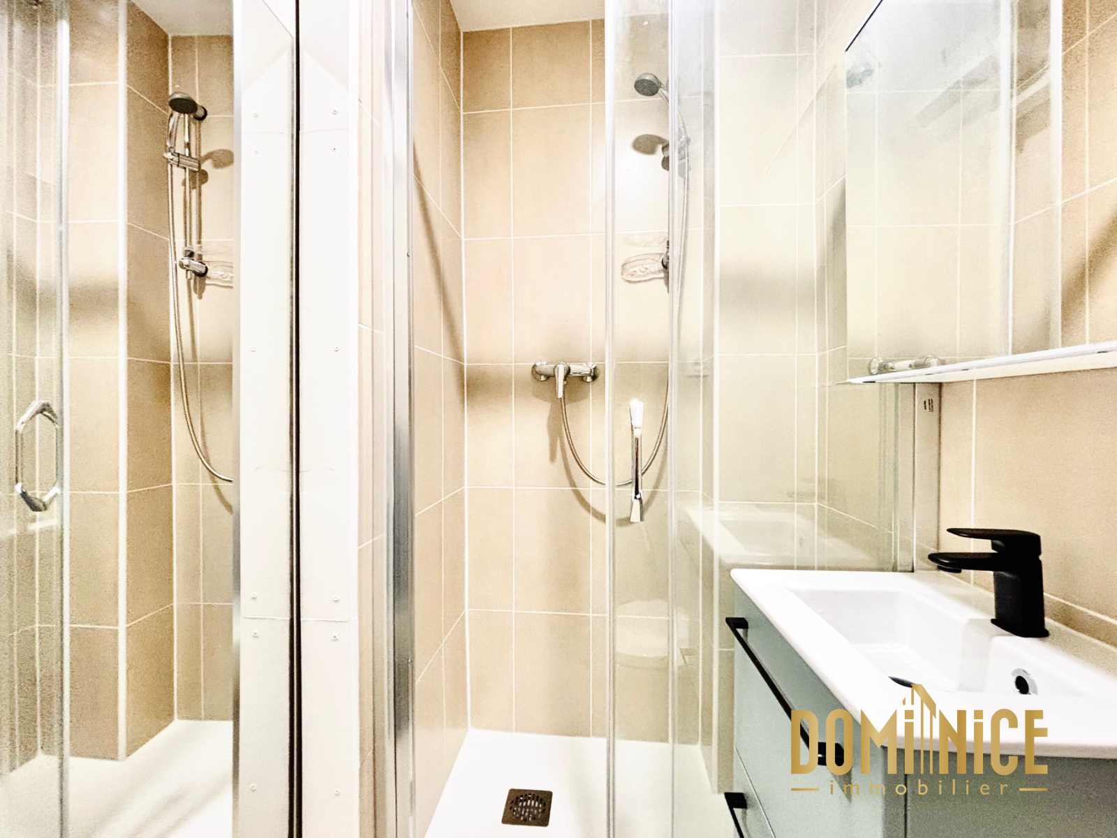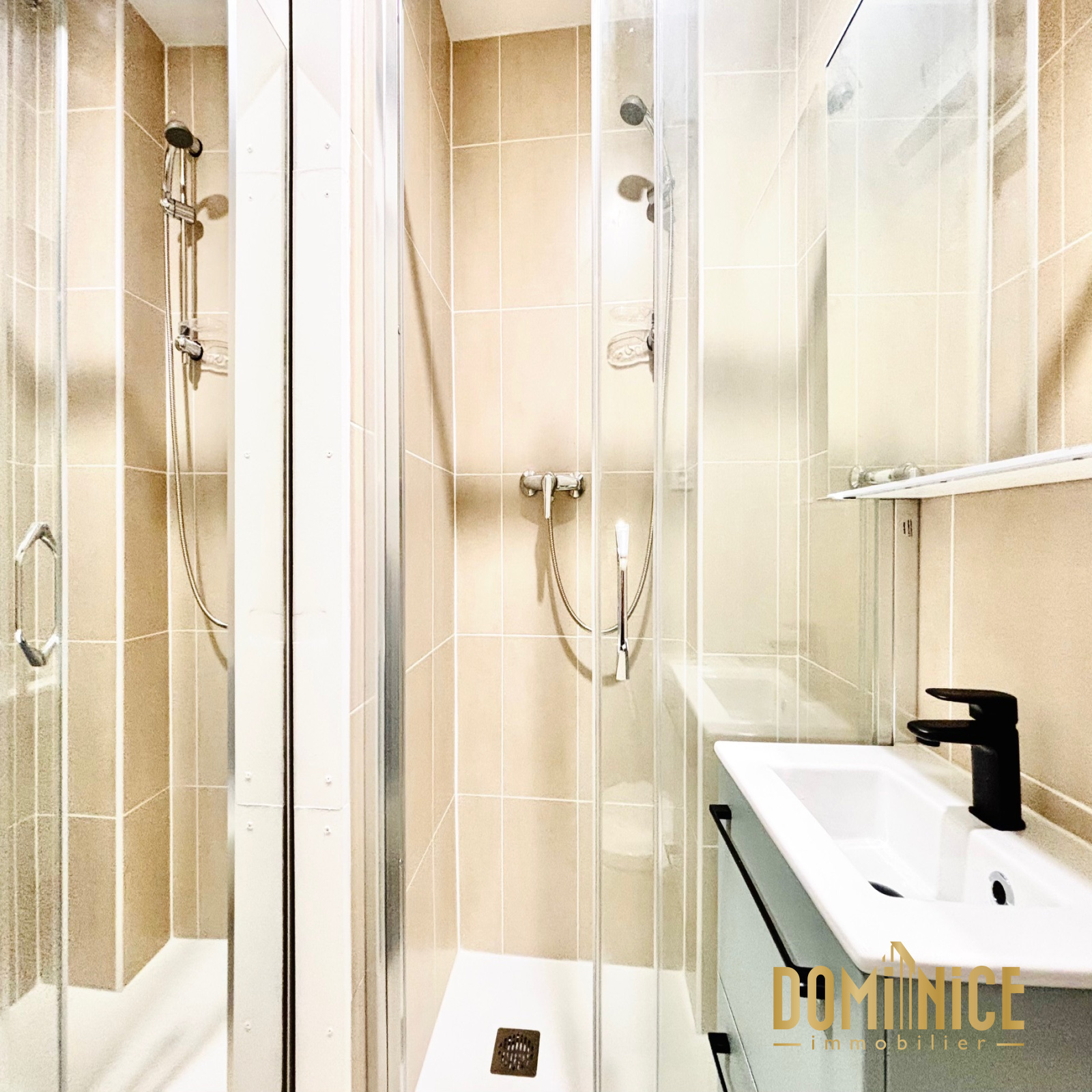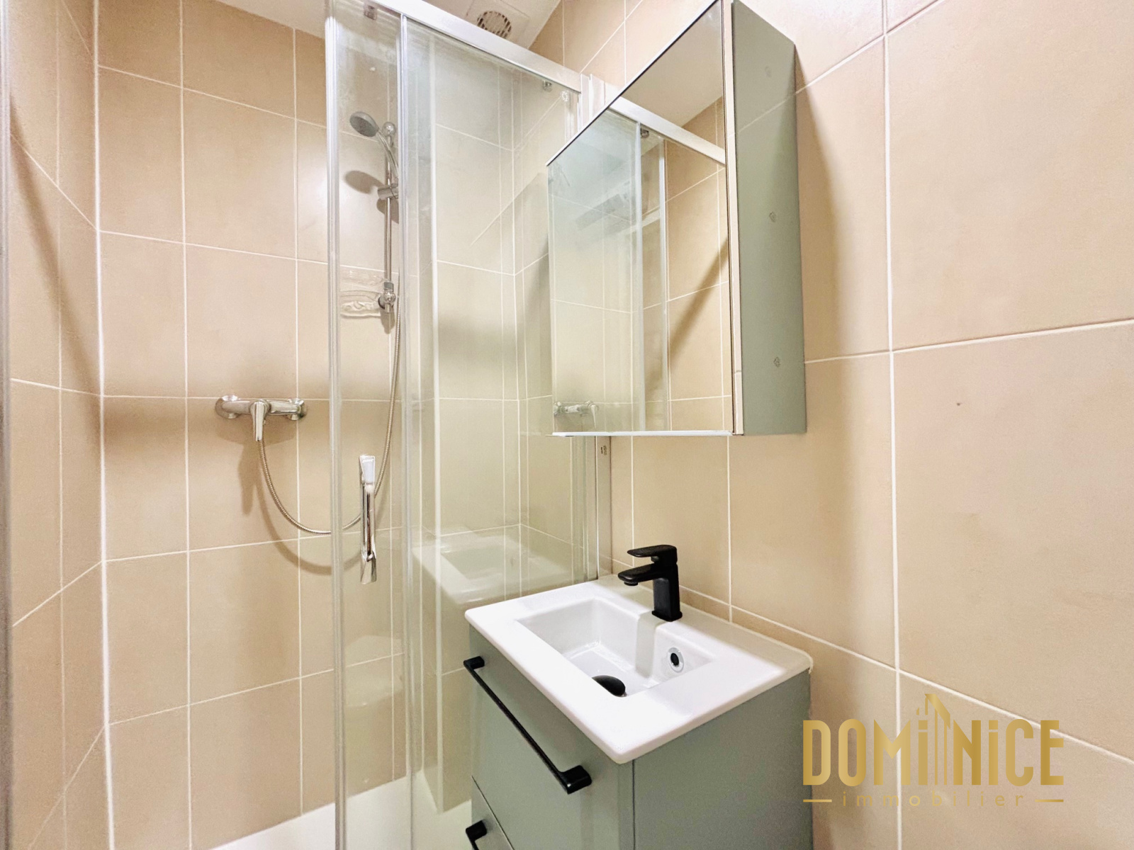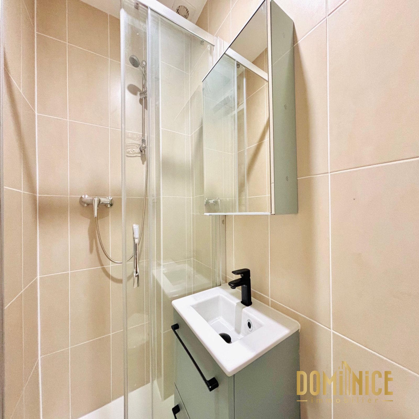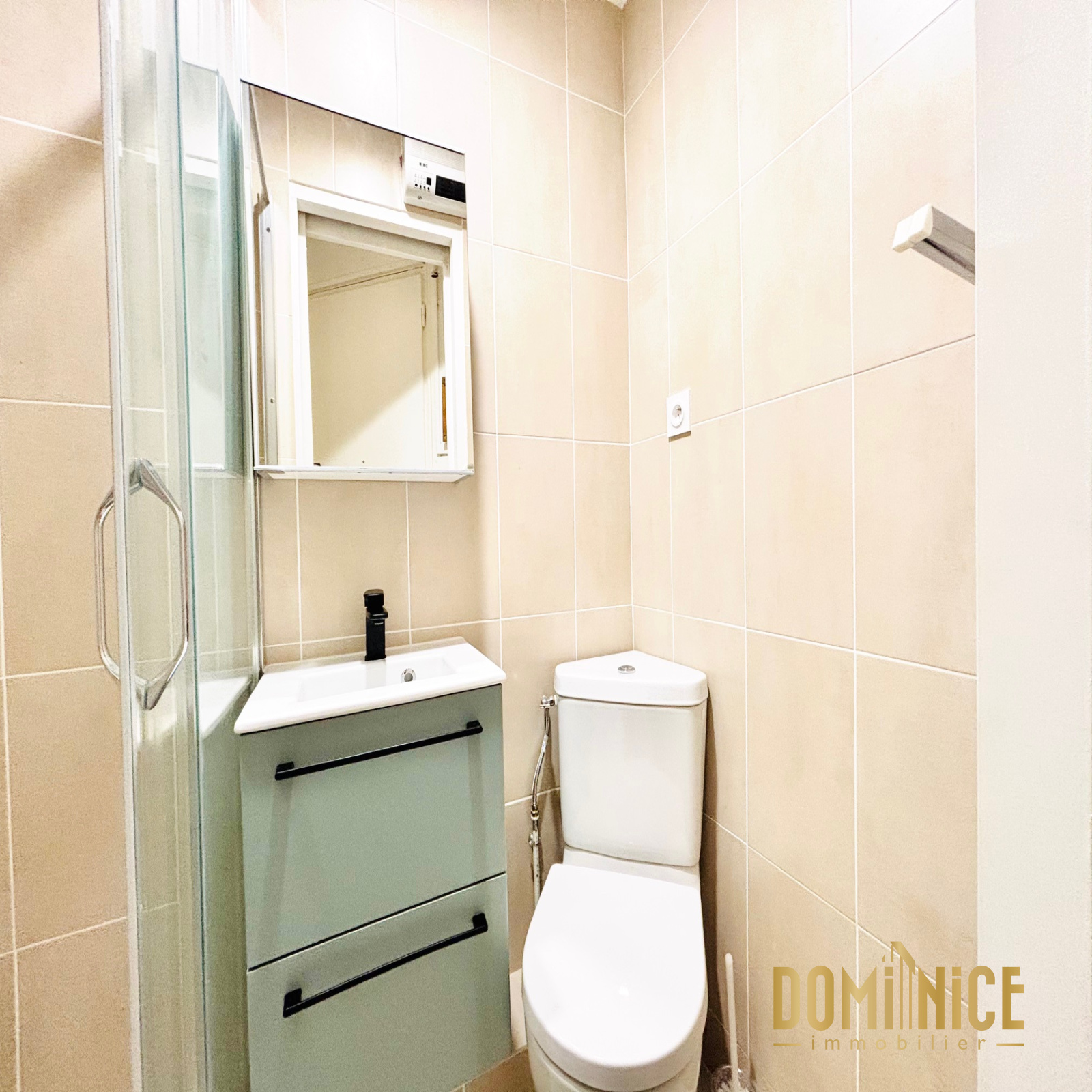 L’appartement se compose d’une petite entrée avec placard, d’une salle de douche avec WC, d’un agréable séjour avec coin cuisine aménagé ouvrant sur un balcon au sud, et d’une grande chambre. L'ensemble équipée de double vitrage et de la climatisation.