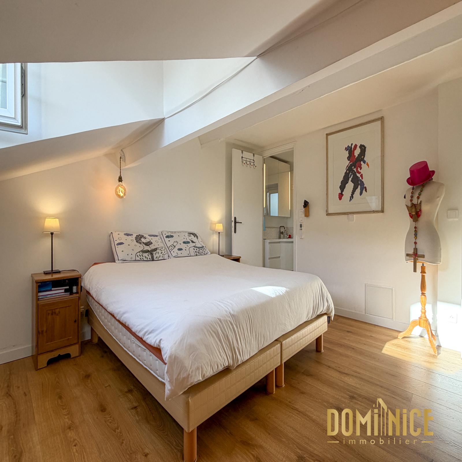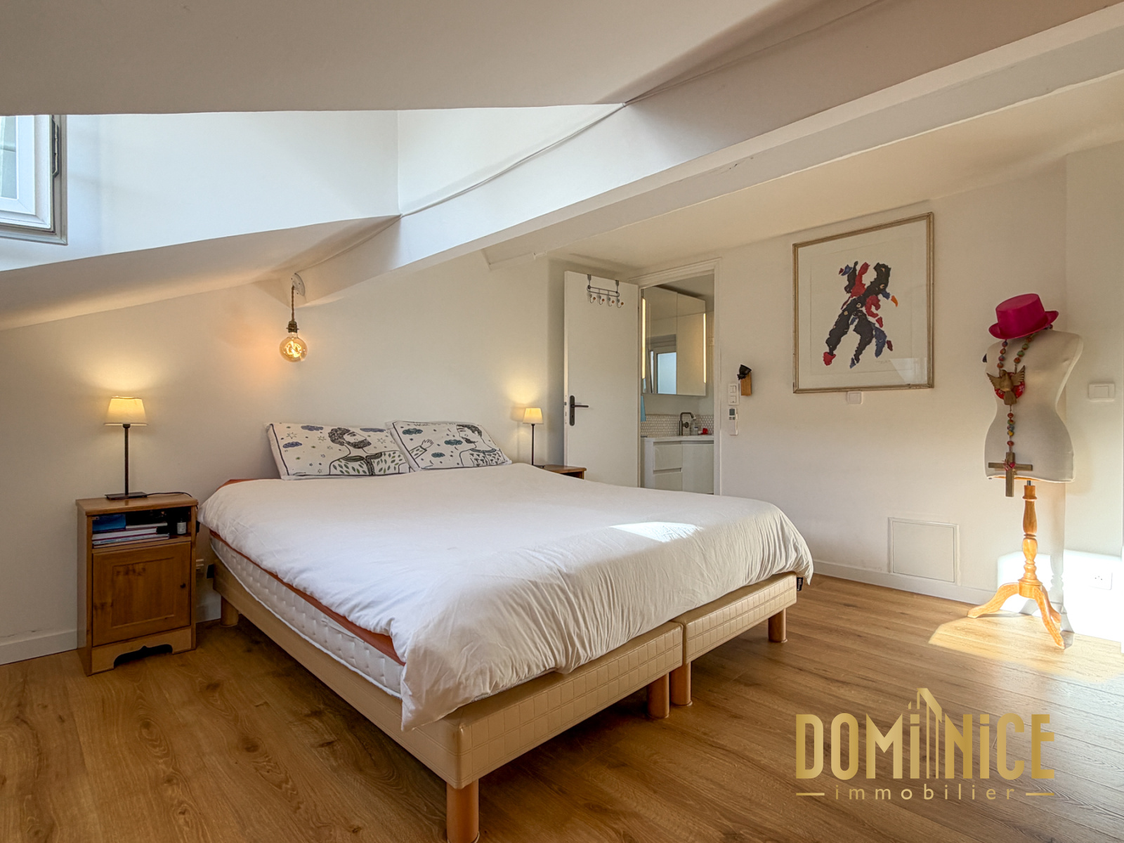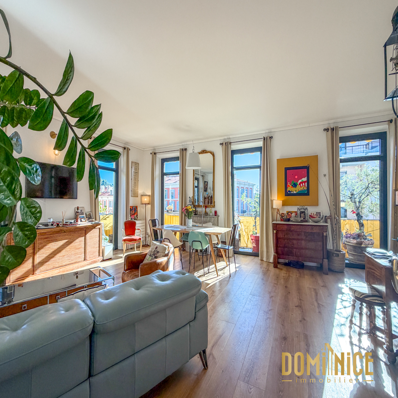 RARE : Au coeur de la Ville, dans un bel immeuble niçois ravalé, superbe 4 pièces en duplex. Ce sera certainement votre prochain coup de coeur : en dernier étage, il dispose au niveau d'accueil d'un grand séjour de 47 m2 prolongé par une cuisine de 9 m2, placard et WC, et un balcon circulaire de 14 m2 qui fait le tour de toutes les pièces de vie. Le séjour en angle avec ses 5 portes fenêtres est baigné de lumière et soleil. Au niveau supérieur en grande partie mansardé, vous retrouverez 2 chambres en suite avec leurs propres salles d'eau, et une pièce pouvant faire office de chambre d'enfant, chambre d'amis ou grand dressing, ainsi qu'un WC indépendant pour le niveau.
