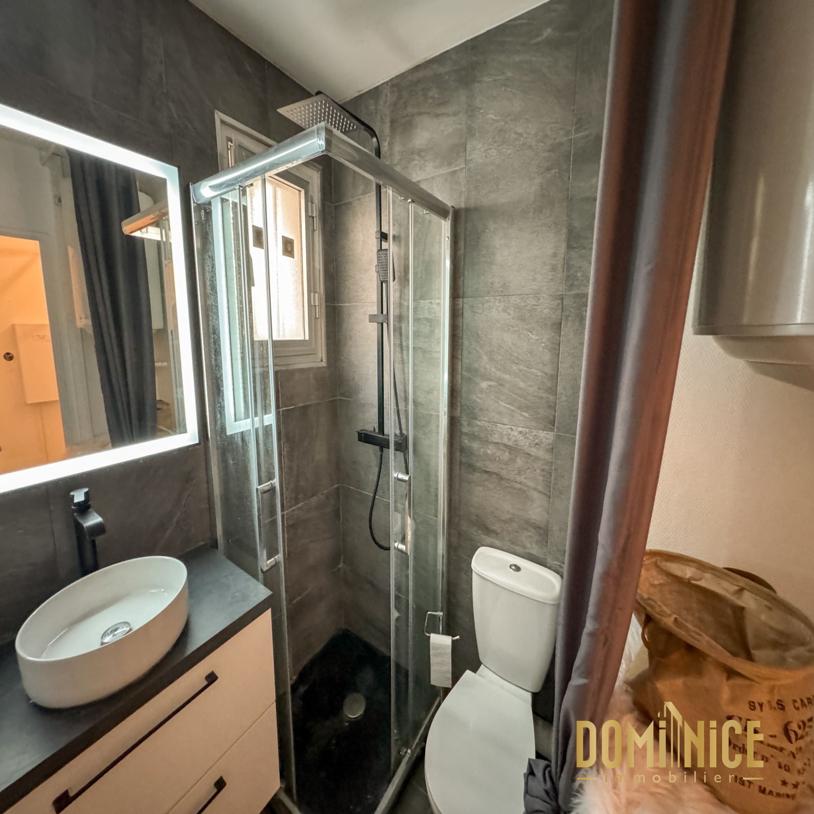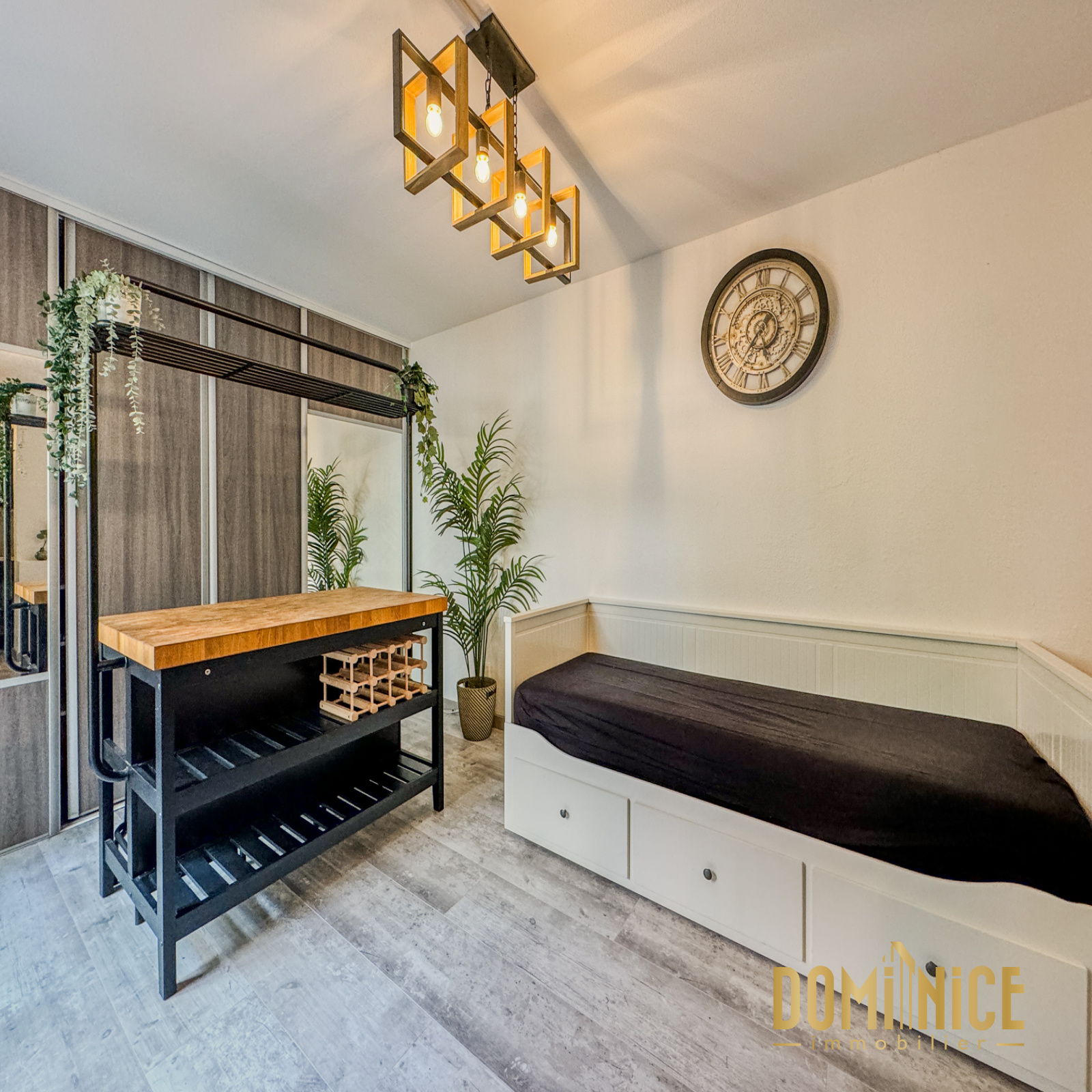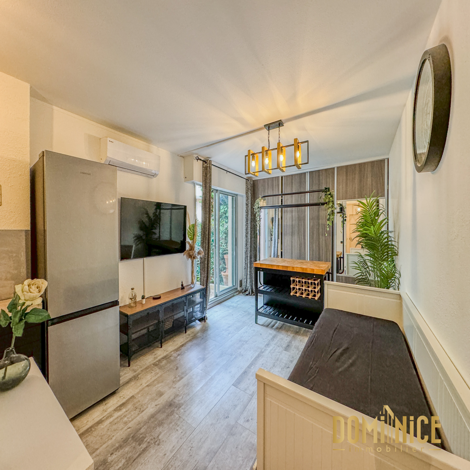 EXCLUSIVITE : FABRON : Dans une copro sécurisée avec piscine, superbe studio de 27 m2, rénové avec terrasse d'une quinzaine de m2 en RDJ. Il est vendu entièrement meublé. Très bien configuré, il dispose d'une salle de douches avec WC et machine à laver, rangement dans le couloir, pièce de vie équipée de clim réversible, d'une télé grand écran, meuble TV, canapé-lit, ilot central design, grand placard aménagé, cuisine entièrement équipée avec hotte, grand réfrigérateur, four, four micro ondes, table de cuisson... Vendu avec cave.